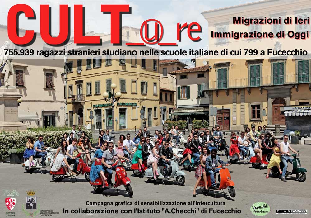 Prosegue la campagna di sensibilizzazione su immigrazione e integrazione sviluppata attraverso il progetto CULT. "Migrazioni di ieri, immigrazione di oggi" è il titolo dei grandi manifesti che campeggiano in vari luoghi della città con la foto scattata recentemente in Piazza Montanelli: un photo shoot con settanta ragazzi e venti vespe che hanno riportano Fucecchio agli anni '50. Protagonisti degli scatti sono stati gli studenti dell'Istituto Checchi che frequentano le classi 4° e 5° C Moda e 4° e 5° A Meccanica IPSIA, e le classi 4° A Elettrico, 5° A Gestione Aziendale e 5° B Turistico dell'Istituto Professionale.