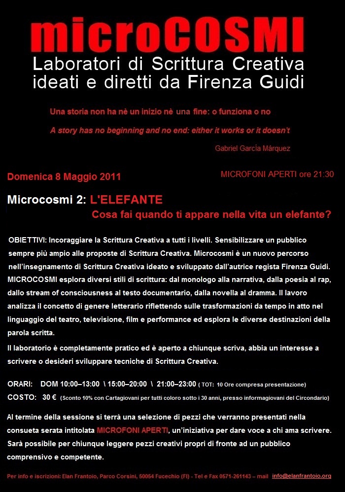 "Microfoni Aperti" è il nome dato alla serata conclusiva del laboratorio di scrittura creativa, un'iniziativa per dare voce a chi ama scrivere. Sarà possibile per chiunque leggere i propri brani ad un pubblico a cui piace ascoltare.