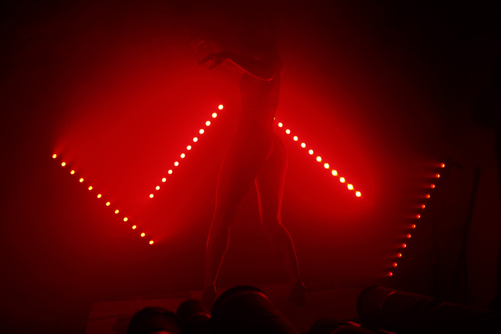 Uno spazio claustrofobico, lei, la prostituta, affitta un pezzo di capannone per i suoi affari. I clienti non li porta a casa sua. È un'imprenditrice, sa trattare con gli uomini, quasi li spaventa. Lo spazio crea metaforicamente un triangolo tra il rapporto prostituta-cliente, il rapporto attore-attrice ed il rapporto attori-pubblico in un continuo intersecarsi di tagli tra la voce vera degli attori, la voce drammaturgica del testo e la voce del pubblico che, negli anni '70, era parte attiva della rappresentazione con accesi dibattiti che si alternavano al dialogo teatrale.