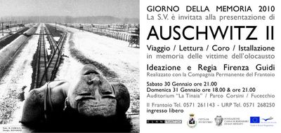 "Arbeit Macht Frei" - work makes you free: the same sign that greeted the deportees at their arrival in Auschwitz greets the spectators entering the auditorium. The lager is here, today, the past knocks at our door and we are obliged to listen. We pass the gate of the concentration camp and we are not human beings anymore, identity is replaced by a number.