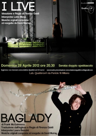 Il secondo spettacolo, BAGLADY - scritto nel 1985 da Frank McGuinness e tradotto e adattato per la prima volta in Italia da Firenza Guidi – narra la storia di una homeless che trascina con sé i resti della sua vita avvolti in buste di plastica, trattando tematiche come la solitudine, l'emarginazione, la violenza, la negazione di se stessi e del proprio passato. Sul palco una sola attrice, Laura Bencini, e un getto di parole.